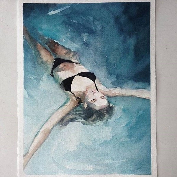 肆意的夏天 巴西超现实主义画家marcos Beccari 的女性戏水水彩画 Kiinii App